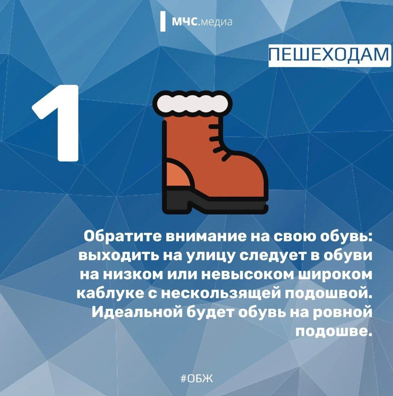 Пешеходам рекомендуют обходить участки, покрытые льдом, выбирать посыпанные песком дорожки, обращать внимание на обувь. Пожилым людям лучше взять трость с резиновым наконечником.