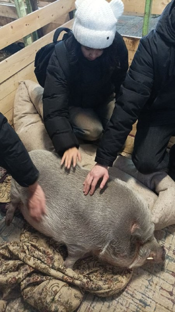 После работы ребята познакомились с другими волонтёрами и, конечно, пообщались с обитателями двора — лошадьми, страусами, минипигом и другими животными.