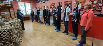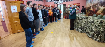 На этот раз преподаватель истории Любовь Витальевна Литуева привела группу 1 МЭЭП-55 познакомиться с экспозицией музея. Здесь собраны артефакты военных лет, награды, документы и личные вещи ветеранов.
