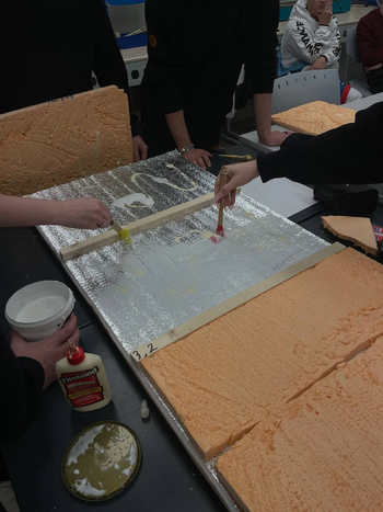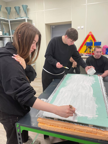 Под руководством преподавателя Аксиньи Шейченко студентки Алевтина Чиркова и Ирина Минка подготовили подробную презентацию с технологическими этапами и представили разрез стеновой конструкции.