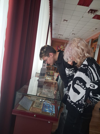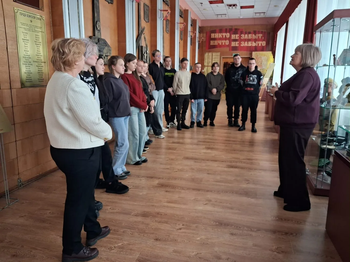 Студенты группы 2ГПР 99 Магаданского политехнического техникума вместе с преподавателем истории Любовью Витальевной Литуевой провели необычный урок в Галерее Славы Центра культуры.