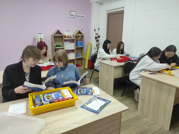 Мастерская «Дошкольное воспитание» включает около 30 позиций оборудования и материалов, которые помогут студентам освоить информационно-коммуникативные технологии в дошкольном образовании. Здесь есть ноутбуки с программным обеспечением для разработки интерактивных игр, интерактивная панель, дидактические материалы, книги-хрестоматии, наборы для кукольного театра, полиуретановые коврики для физической подготовки и разнообразные игрушки.